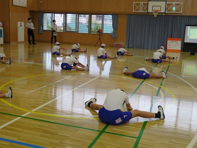 けがをしないようにしっかり準備運動をします。