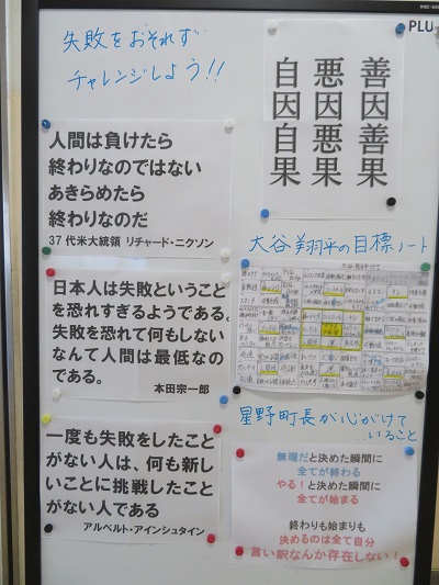町長さんからいただいた言葉は、早速学年の廊下に掲示しました。