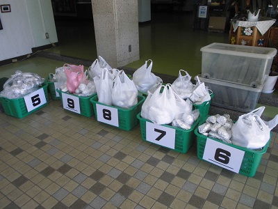 6年生の班長、副班長以外の人は、必要な数だけさつまいもの数を数え、職員玄関や、体育館南玄関に運びました。