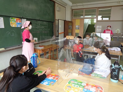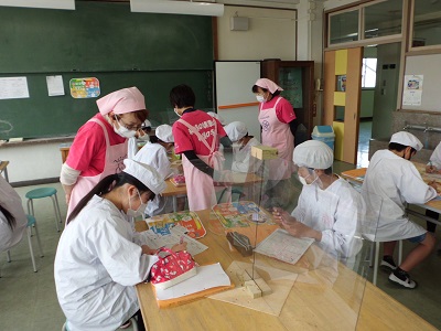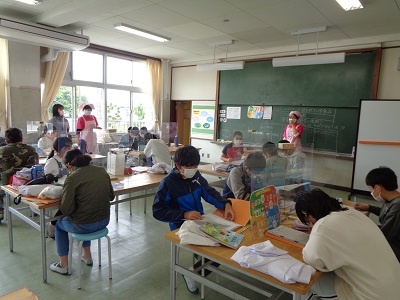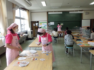 調理をしない半分の児童は別室で家庭科の学習をしました。食生活改善推進員さんが栄養についての話をしてくれたので、調理をしていない時間も有意義に過ごすことができました。