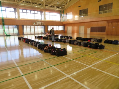 事前にもってきておいた荷物の中から、自分の物を探して班ごとに並びます。