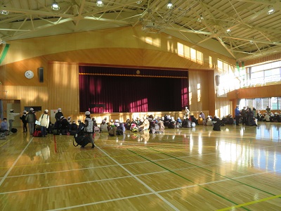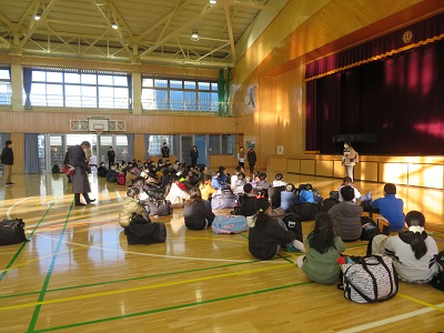 登校したら、教室へは行かず、体育館に集合です。