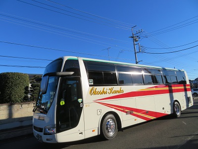 大きな荷物をバスの下に詰め込んで・・・