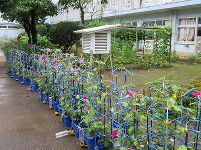 こちらは、中庭ではありませんが、3年生が育てているマリーゴールドとホウセンカです。