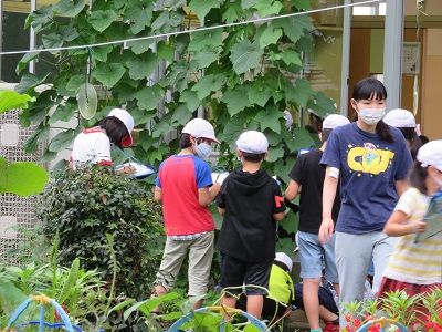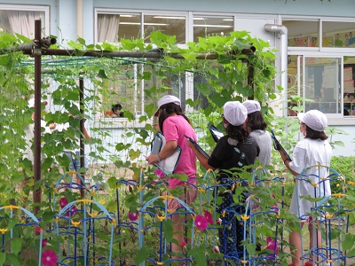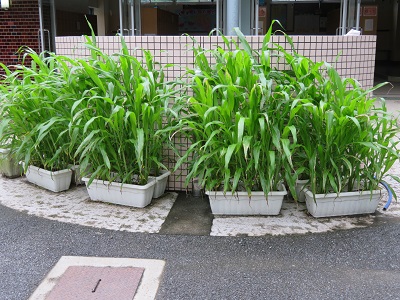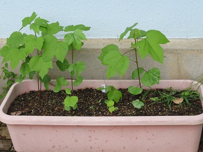 ボランティアの方からいただいた数珠玉と綿も、大きく育ってきました。