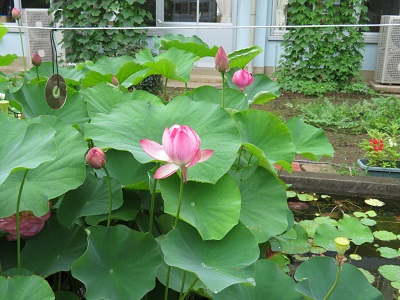 池の古代蓮は、毎日のように新しい花が咲いています。