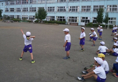 2年生体育 ソフトボール投げの練習