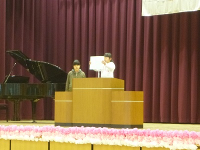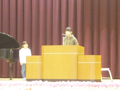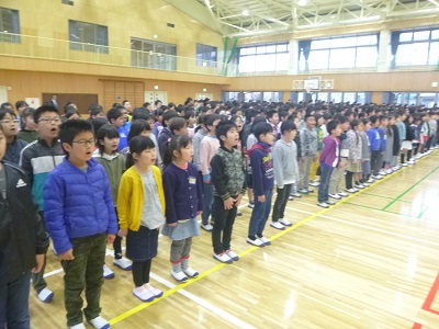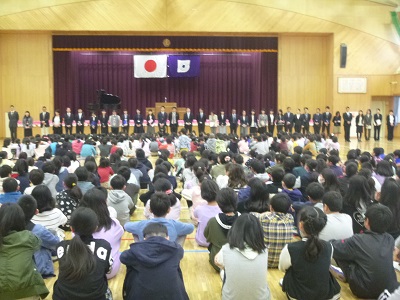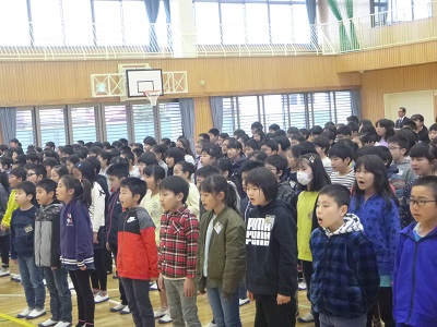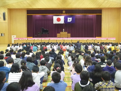 国歌斉唱の後、4年生と6年生の代表児童から、頑張りたいことの発表がありました。校長先生より、「心を結ぶ挨拶をしよう。」「目を見てしっかり話を聞こう。」というお話がありました。校歌斉唱の後、子供たちが楽しみにしている担任発表がありました。