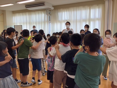 二つ目のレクリエーションはじゃんけん列車です。トーマスの曲に合わせて、ゆっくり進みました。