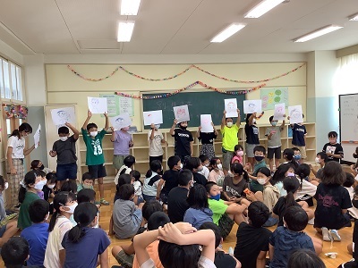 お別れする先生の顔を協力して描きました。どのチームも特徴をよく捉えていますね。