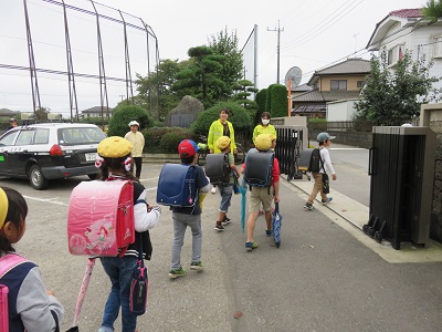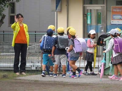交通安全母の会の方が来校し、下校時に校門付近に立ち、「ひと声」運動を実施しました。