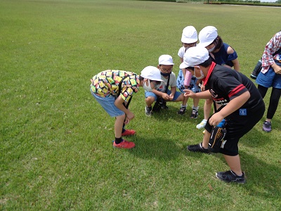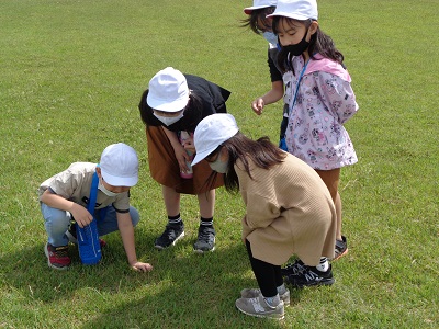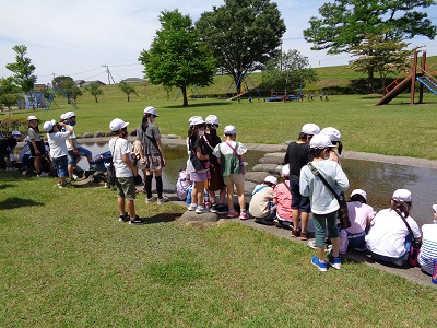 蓼沼緑地公園では、総合的な学習の時間の「町の魅力を発信しよう」の学習に絡め、自然観察をし、虫や植物を見付けました。