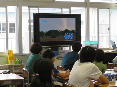 避難訓練の前に、動画を見て竜巻についての学習をしました。