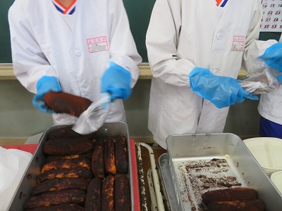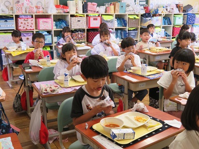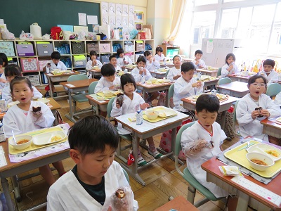 みんなニコニコ、揚げパンを食べると笑顔になりました。