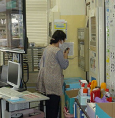校内電話で不審者情報を聞いた職員室の職員が駆けつけます。