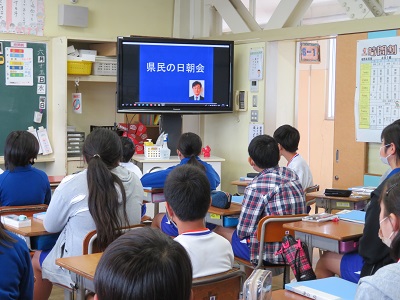小さい学年の子たちには、少し難しかったかも知れませんが、1週間ほど、給食の時間に県民の歌がかかっていたので、リズムを取りながら聞いていました。