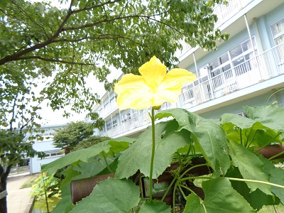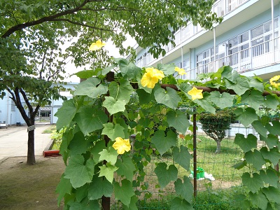 夏休み前には咲いていなかった、ヘチマの花が咲いています。