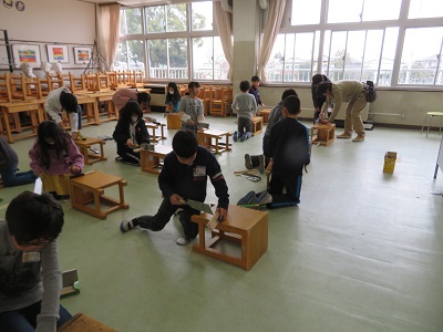 4年生の図工の時間に、のこぎりと金槌を使う学習があります。