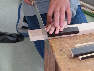 今年は、木を押さえやすいような補助道具を作ってきてくれました。