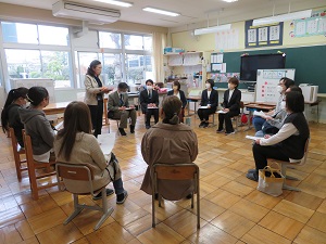 まず、学年の先生からお一人ずつ挨拶がありました。その後、1年間の学年経営について説明がありました。学習面や生活面で指導していきたいことについて、資料を基に懇談が行われていました。6年生では、修学旅行についての説明もありました。