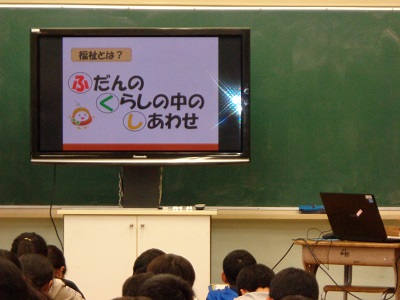 この日は、上三川町社会福祉協議会の方が来校し、福祉についての基本的なお話をしてくれました。