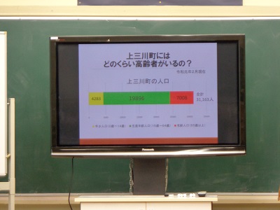 上三川町の高齢者の割合を示したグラフを見て、考えたりしました。