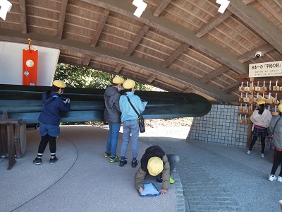 4年生が社会科「町に残る古いもの・行事」の学習で校外学習に行きました。