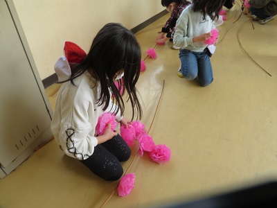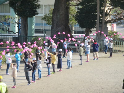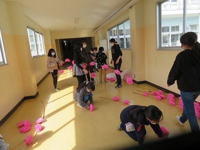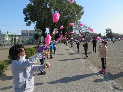 今年は在校生は卒業式に出られないので、門出で6年生とお別れします。