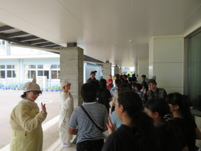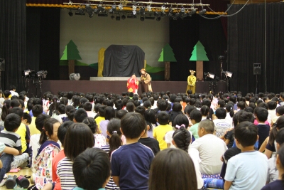 1~3年生と4~6年生の2回公演を行っていただきました。1~3年生の公演では、消費者被害防止安全劇の『タヌキとキツネがだまされた』も見ました。悪質商法で騙されそうになったら消費者ホットラインに相談できることを教えていただきました。