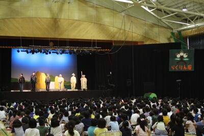 上小体育館で、北小学校、坂上小学校の3校合同で、劇団らくりん座さんの演劇を鑑賞しました。