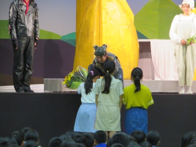 1年生から6年生まで、有名な絵本『あらしのよるに』の劇を見ました。狼さんととやぎさんの種族を越えた友情物語に感動しました。