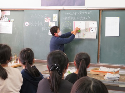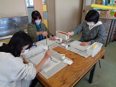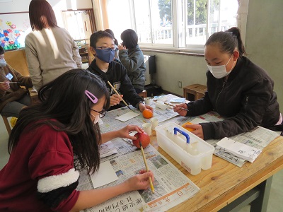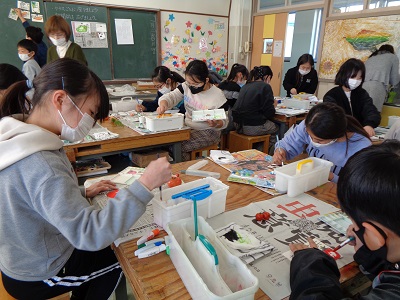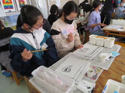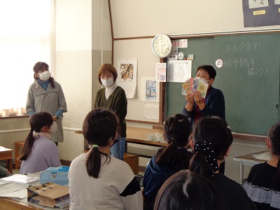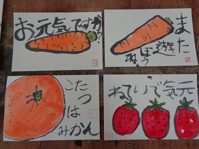 ボランティアの方が3名来校し、絵手紙の書き方を教えていただきました。