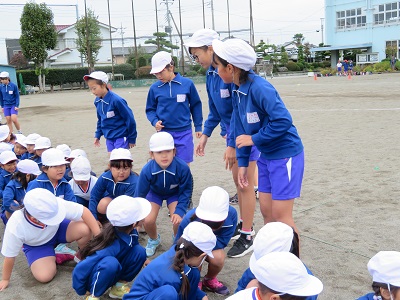 先生が指導するのではなく、6年生が下級生に説明をし、指示しています。