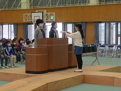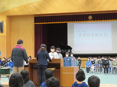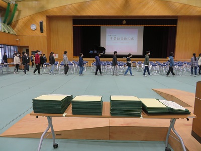 今年の卒業式には5年生も出席するため、5・6年生が一緒に予行練習を行いました。