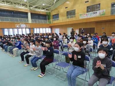 5年生も、拍手や態度で感謝の気持ちを表しました。