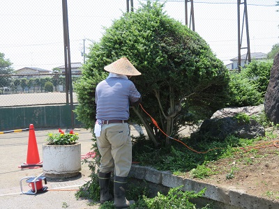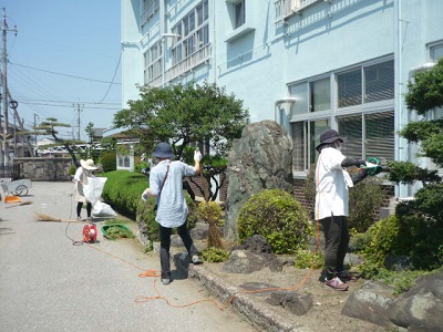先週の花植えに続き、環境ボランティアさんが樹木の刈り込みに来てくださいました。