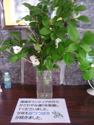 ナツツバキの枝は、花瓶に挿して玄関に飾りました。