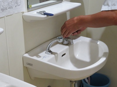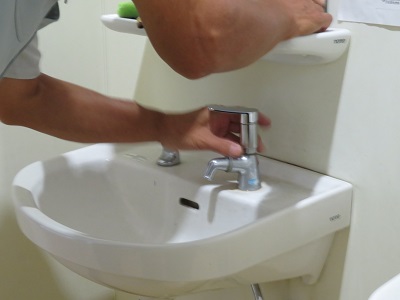 朝、登校して手を洗うとき、子供たちはびっくりしていました。