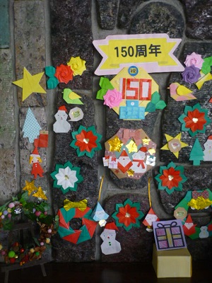 クリスマスの飾りを折り紙ボランティアさんが、きれいに飾り付けをしてくださいました。