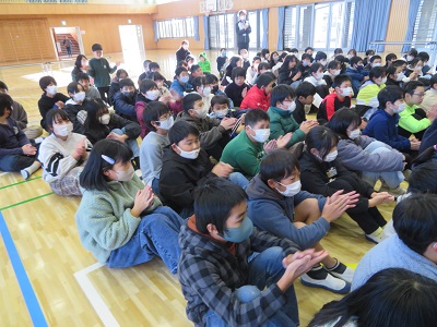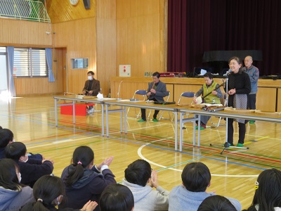 初めて聞く民謡の生演奏に、子供たちは聴き入っていました。