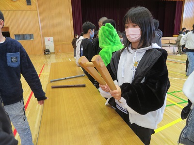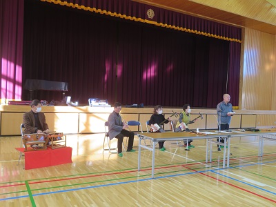 その後、民謡に使う主な楽器について、実物を見せながら説明がありました。