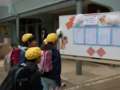 3年生、5年生はクラス替えがあるのでドキドキしながら自分の名前を見付けていました。