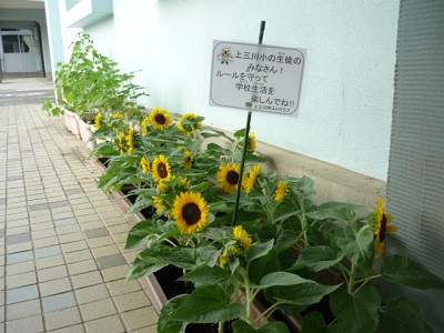 東西の昇降口に置きますので、ひまわりから元気をもらってください。