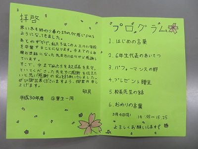 6年生 先生方に感謝する会 招待状