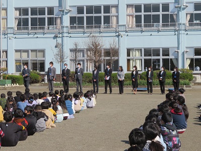 先生方、早く上小にに慣れ、私たちと楽しい学校生活を送りましょう。