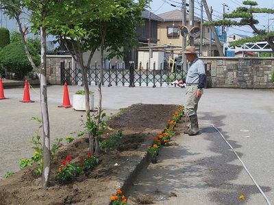 今回は、さわやか通りの花壇の花植えをしていただきました。