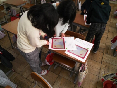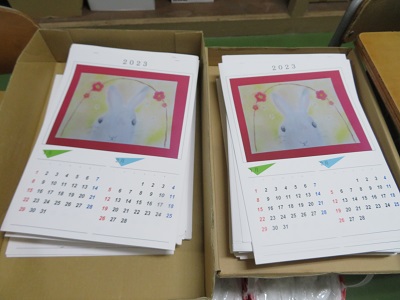 2年生は、ステープラーでカレンダーを綴じる作業を行いました。