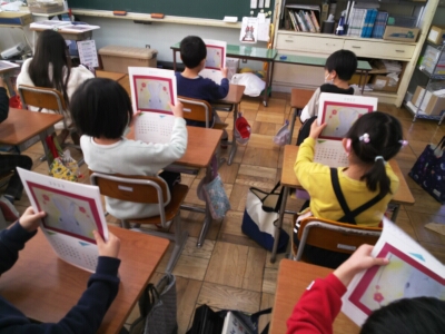 ステープラーを使うのが初めての児童も多く、友達と協力しながら慎重に作業を行っていました。