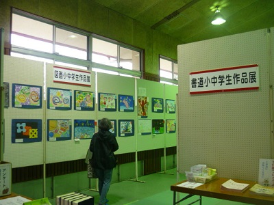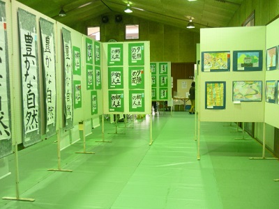児童の作品(書道・絵画)は、町体育館の隣の武道館に展示されています。