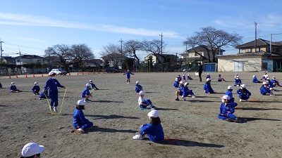 手を交差させて上手に跳ぶ児童達。